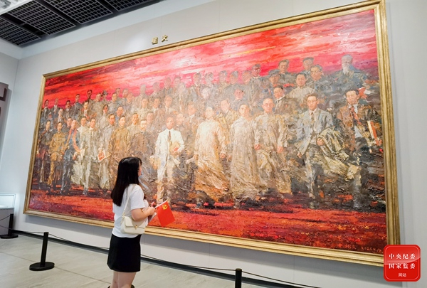 6月4日是中共一大纪念馆正式开馆后的首个公众开放日。展馆布置“伟大的开端——中国共产党创建历史陈列”展览,聚焦中国共产党建党初期在上海的革命实践,以“初心使命”贯穿全篇,展出各类展品1168件。图为观众在巨幅油画《星火》前驻足。(上海市徐汇区纪委监委 张泽惠 摄)